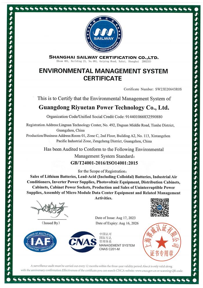 环境管理体系认证证书