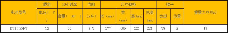 前置端子太阳能专用铅酸蓄电池RT1250-FT(6GFM-FT)系列: