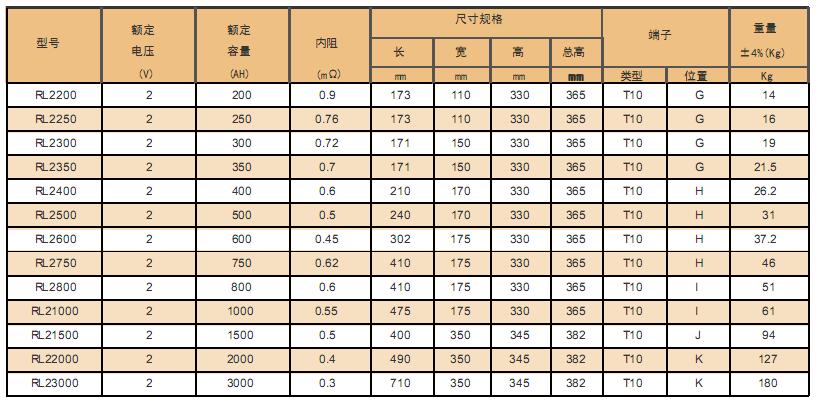 2V铅酸蓄电池RL(GFM)系列产品特点: