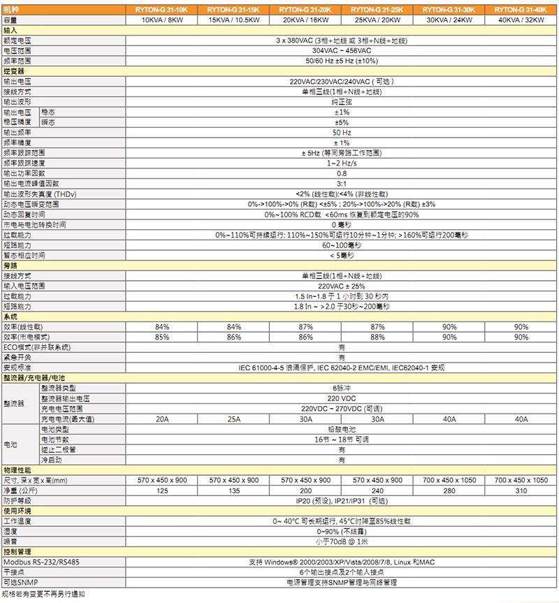 日月潭UPS电源RYTON-G 3/1(220V)系列产品特点: