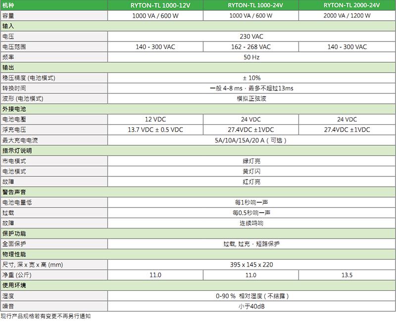 日月潭UPS不间断电源RYTON-TL系列产品特点: